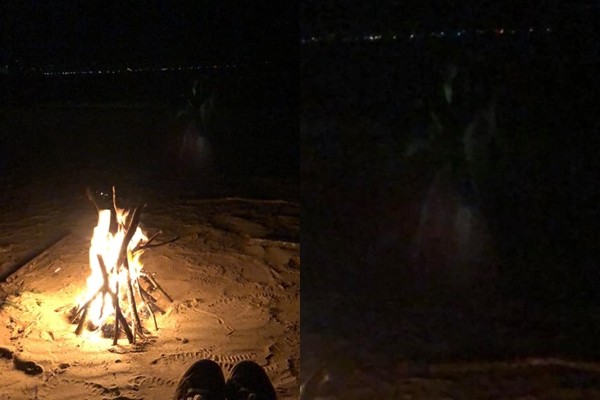 等到火快熄滅,男子再到附近撿柴,回到女友身邊時,卻被告知「拍到奇怪的東西」,讓他嚇了一跳,準備收拾收拾,趕快離開,「我女友看我反應過大於事跟我說是開玩笑的。」