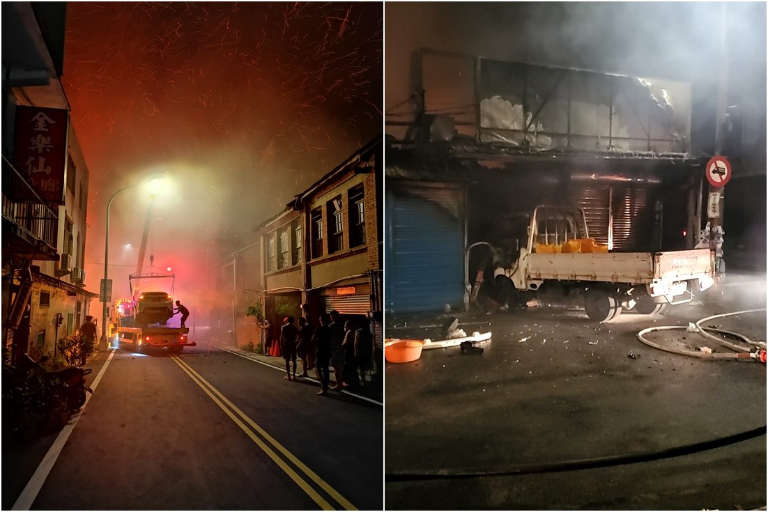 ▲小貨車因車禍失控撞進路旁機車行引發大火。(圖/翻攝「苑裡串起來」臉書社團)