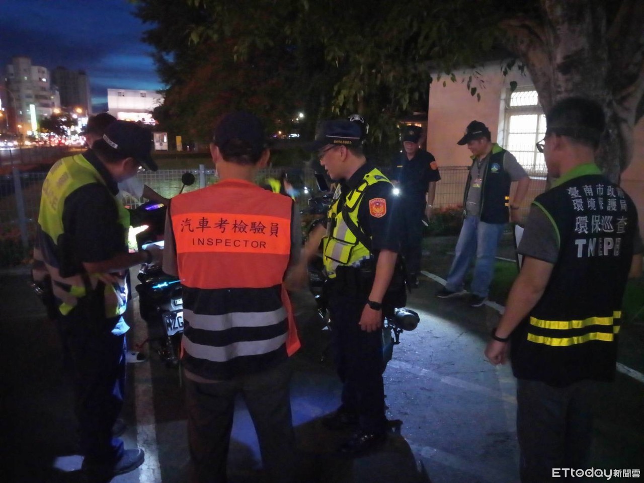 ▲台南市警一分局邀集交警大隊、環保局、台南監理站等單位,晚上執行「環警監聯合稽查」專案勤務加強取締改善噪音車輛擾民情形。(圖/記者林悅翻攝,下同)
