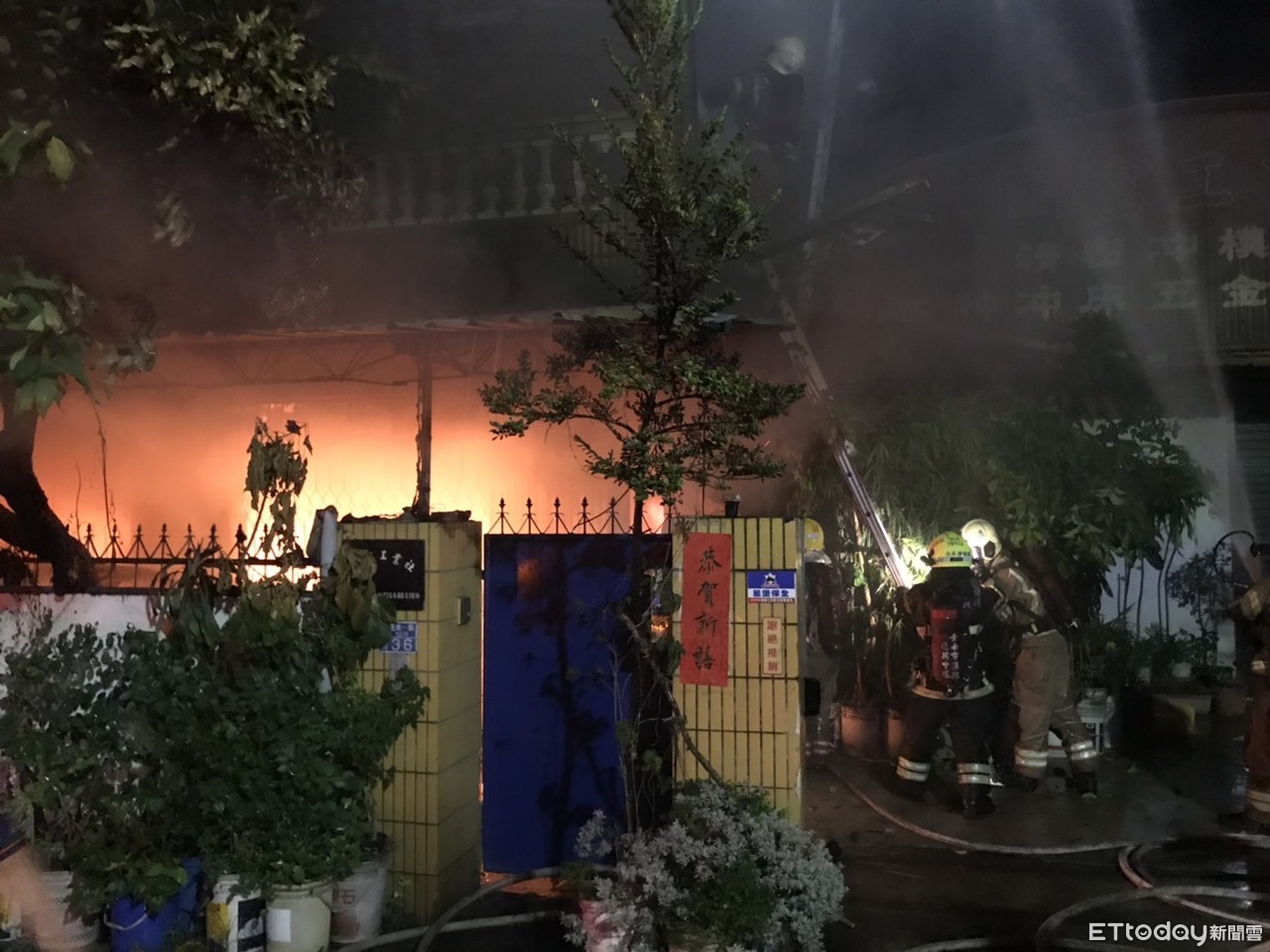 ▲台南市永康區永康區正南一街107巷民宅,24日凌晨傳出火警,消防局出動大批消防人車前往搶救,並架梯救出1人送醫。(圖/記者林悅翻攝,下同)