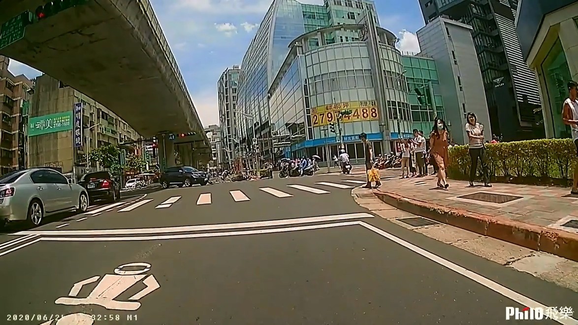 內湖警交通分隊表示,經警方調查,當時機車廖姓駕駛(22歲)行經該路口未減速明顯闖紅燈,因此遭對向車道的黑色休旅車駕駛姚男(34歲)打算直接從內線車道左轉、卻因此撞飛對向騎士,連路旁經過的長腿正妹都嚇得臉色慘白尖叫!