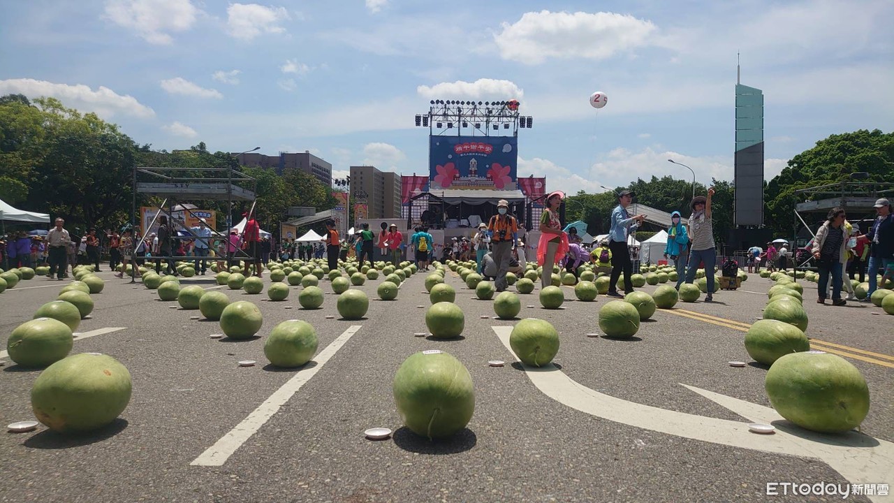農委會選在今(25 日)端午節在總統府前舉辦「立999顆大西瓜」活動,每顆西瓜平均20-30台斤,現場吸引超多民眾前往,農委會貼心準備小盤子,要讓每個人都能順利的立起來,只是天氣炎熱到讓不少人直呼熱爆,一身汗狂流。主委陳吉仲還透露,只怕冷不怕熱,之前有先練習,否則「NG就丟臉」。
