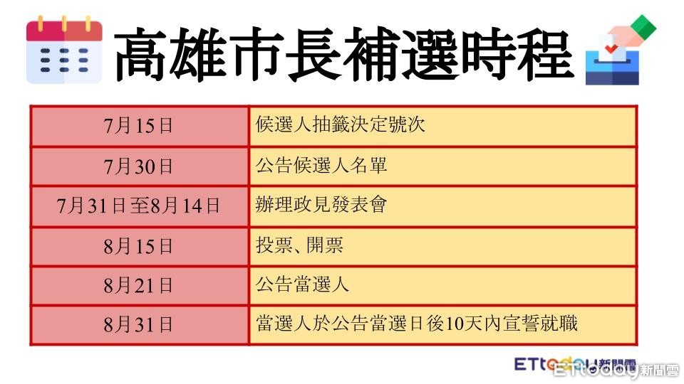 ▲高雄市長補選時程。(圖/記者蔡文鈴製表)