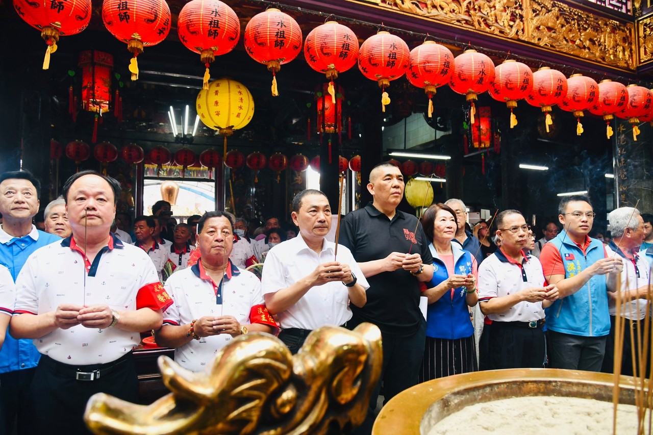 ▲侯友宜上午在淡水清水祖師廟。(圖/翻攝侯友宜臉書)