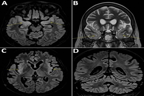 ▲法國患者病逝後發現感染新型病毒,美國國家生物技術資訊中心公布其腦部磁振造影成像。(圖/翻攝自NCBI網站)