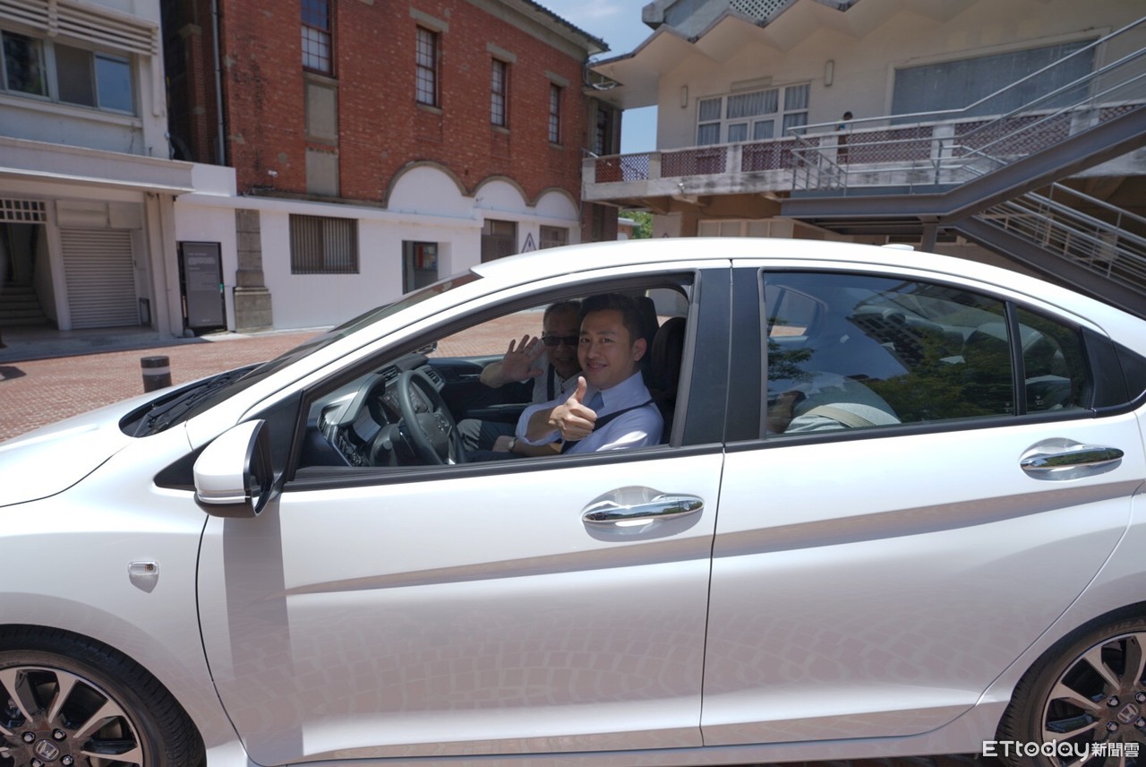 ▲新竹市長林智堅親自駕駛「幸福號」,到第45萬幸運寶寶的家。(圖/新竹市政府提供)