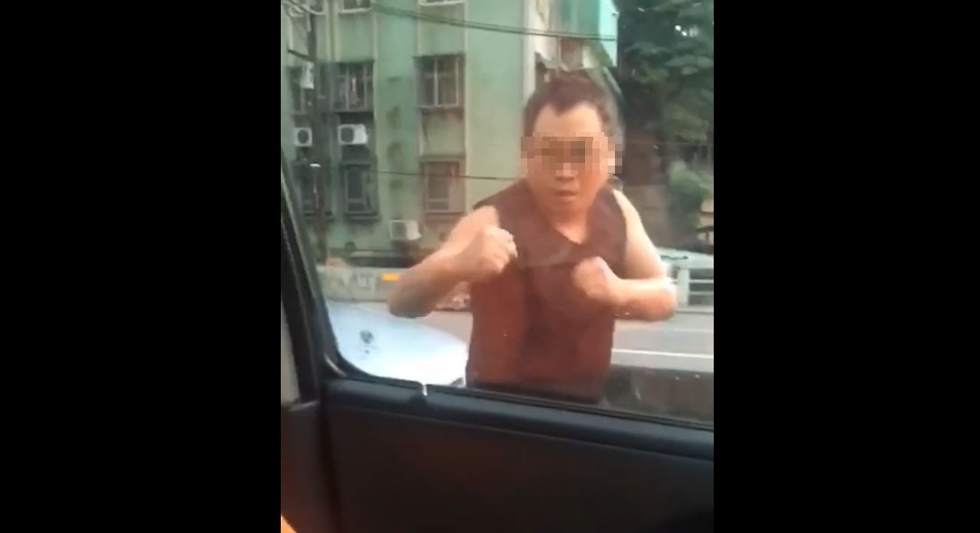 ▲遊覽車司機感覺相當氣憤,但武打的動作與認真的表情卻散發出一種可愛又憨厚的氣息。(圖/翻攝自臉書爆料公社,以下同)