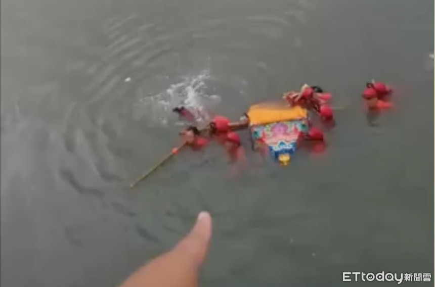 抬轎人員抓著媽祖鑾轎踢水緩緩移動,鑾轎更是側倒幾乎是滅頂狀態,信徒在橋上不斷喃喃「媽祖保佑」,還有人說,「有那個很多那個東西在拉媽祖」,所幸所有人員平安上岸,過程超驚險,信眾紛紛表示「媽祖靈驗保佑」。