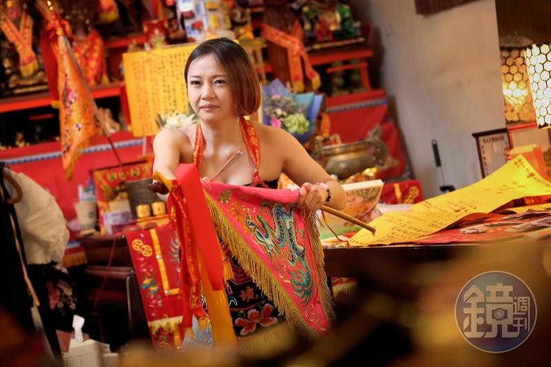 ▲鄭安室經過乩身訓練,可以通靈。每次不同神明上身,會有不同的表情、聲音、動作。(圖/鏡週刊提供,下同)