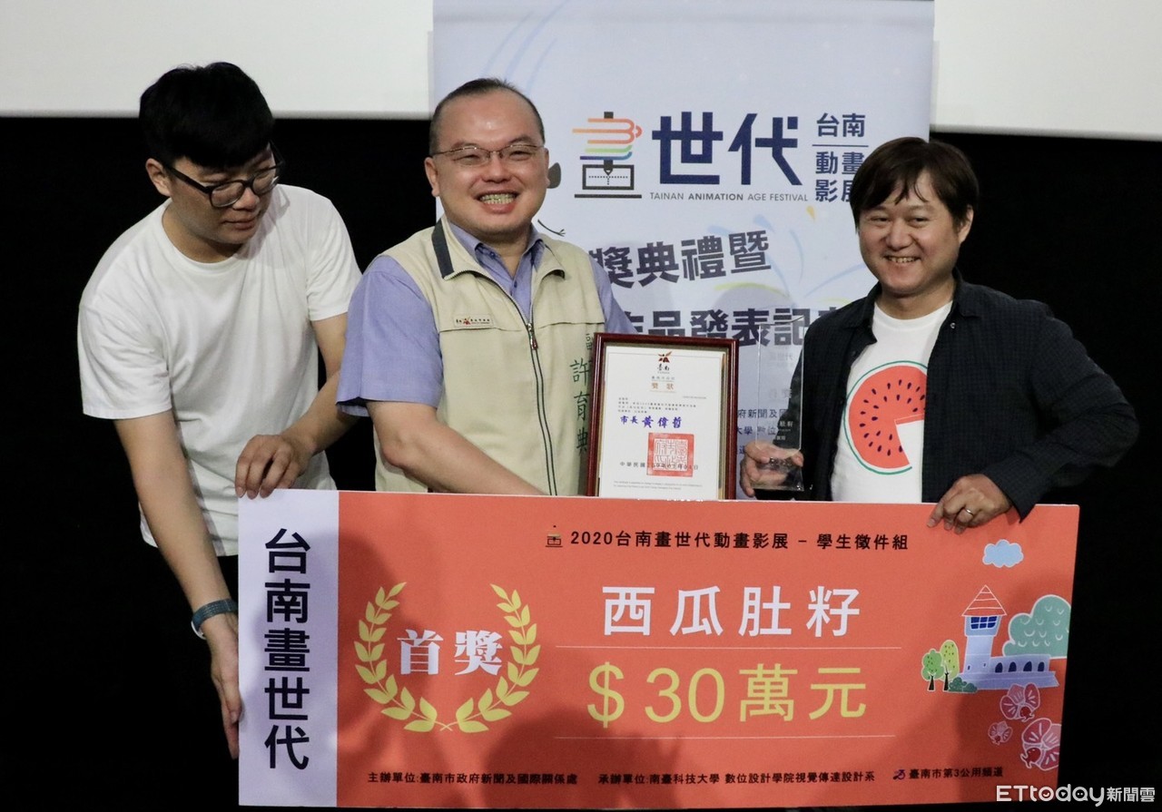 徵件頒獎暨作品發表記者會4日於台南新光影城舉行,由20組入圍團隊角逐首獎30萬元的高額獎金,台南市副市長許育典特別到場頒獎予得獎者,會後並進行作品公開放映,展現學子們的動畫創作能量。