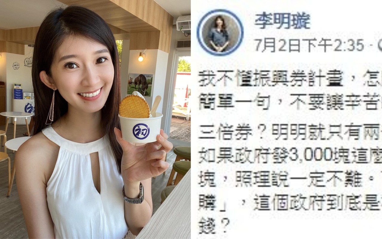 ▲李明璇臉書發文轟三倍券。(圖/翻攝李明璇臉書)