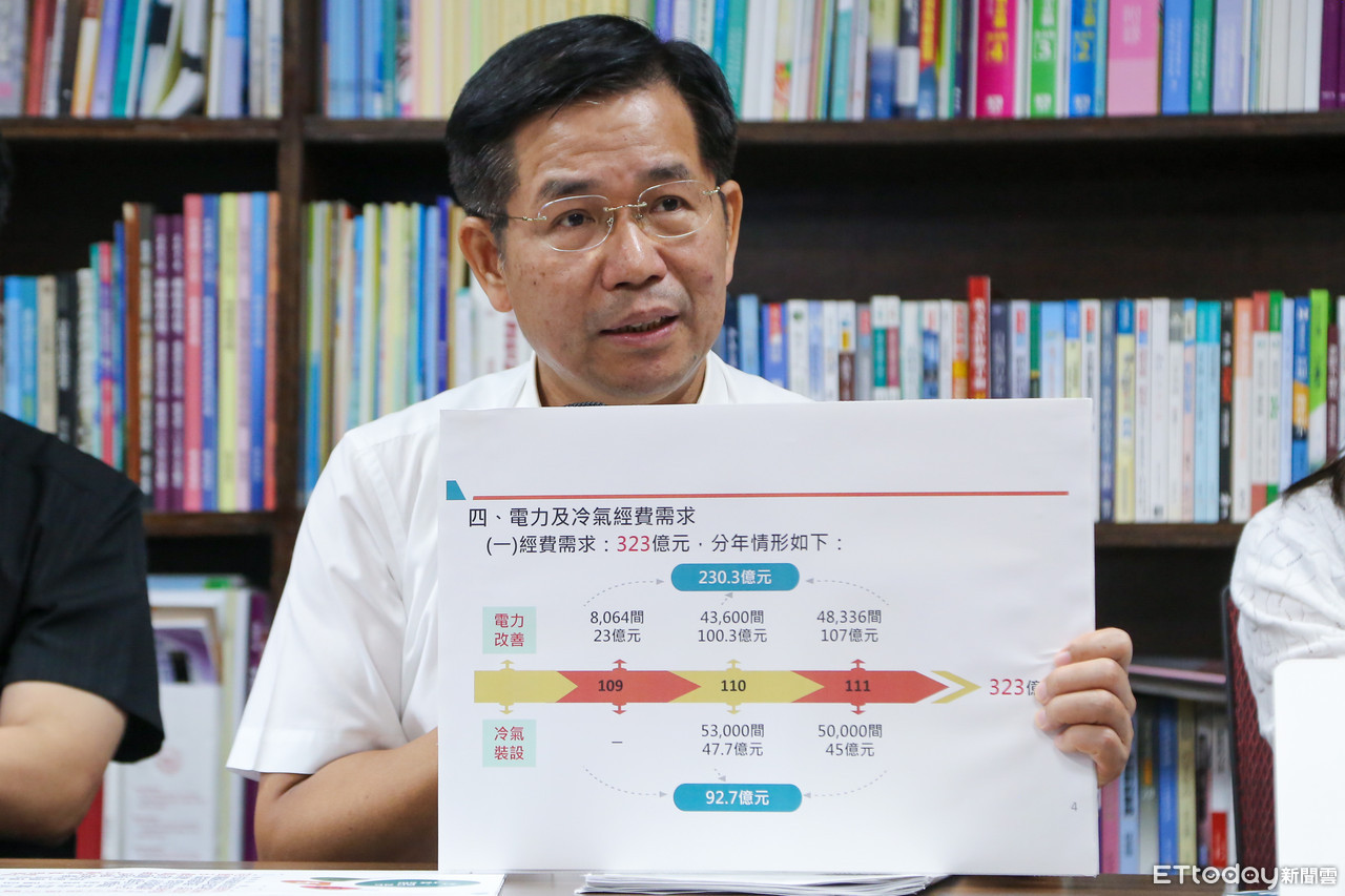 行政院蘇貞昌院長於今(7日)裁示,2年內中小學教室都將有冷氣。教育部長潘文忠稍早指出,將撥323億元預算,預計在111年夏天前將全數完成,改善10萬間屋齡15年以上教室的電力系統,以及10.3萬間教室的冷氣汰換和裝設,讓中小學教室冷氣裝設率從37%提升到百分百,高中職也從80%提升到百分百。