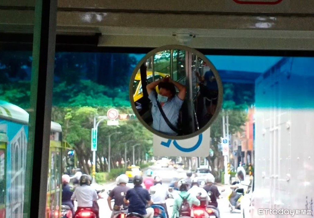 ▲鏡中司機雙手後放等待紅燈,12歲小弟弟著急對他說了3次「我的媽媽還沒上車」,但他當作沒聽到,事後業者才致電婦人道歉,稱會加強教育訓練。(圖/婦人授權提供,請勿隨意翻拍,以免侵權。)