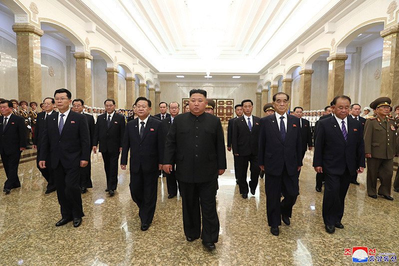 ▲ 金正恩參謁錦繡山太陽宮,紀念祖父26周年祭。(圖/朝中社)