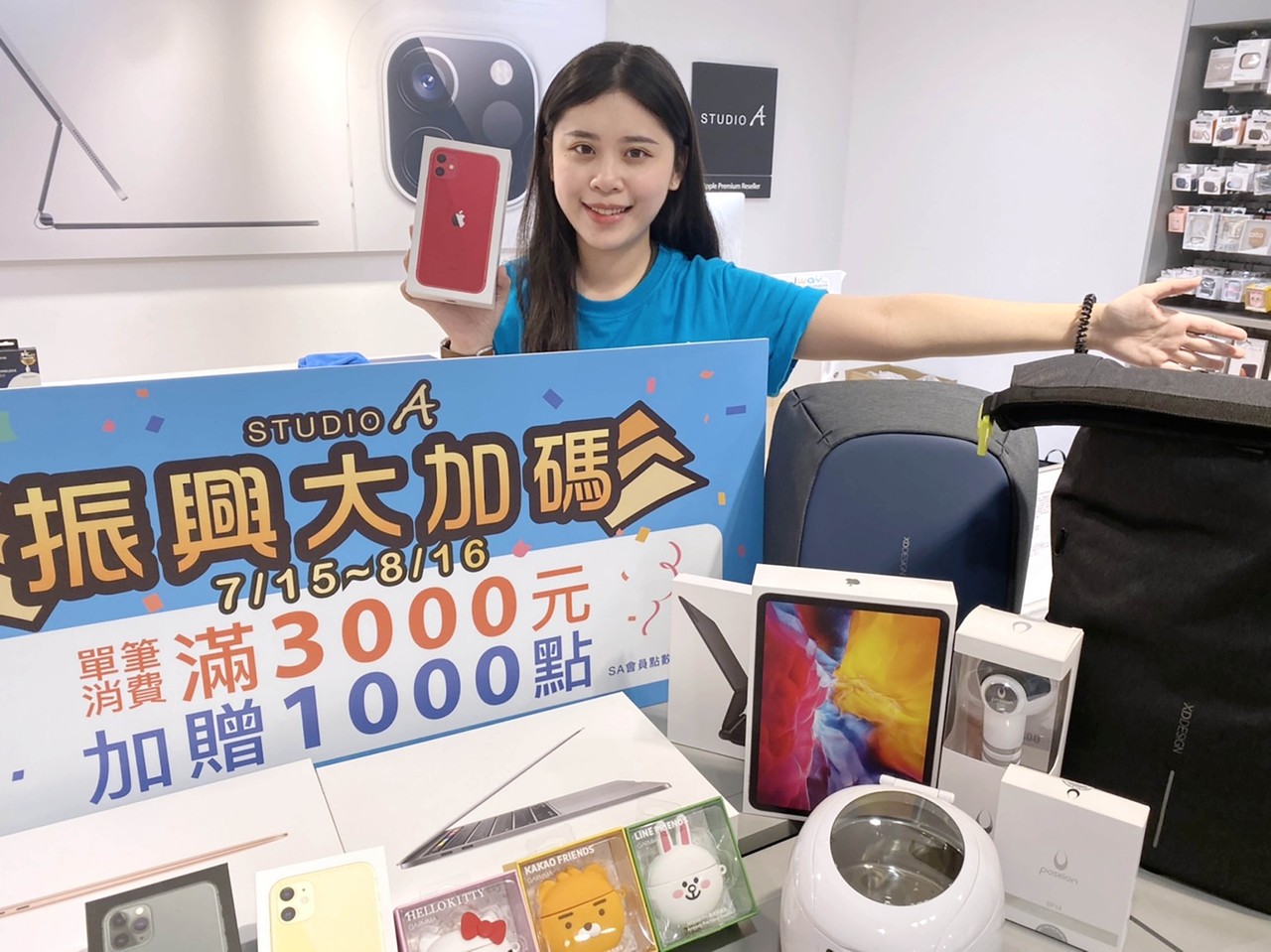 為了響應政府「振興三倍券」政策,蘋果經銷商STUDIO A將於7月15日起推出「A集狂省 VIP超狂加購」限時優惠活動,7月15日~8月16日期間凡於STUDIO A單筆消費滿3,000元即加贈會員點數1,000點,除可作為購置主機折抵外,還可選購限量發售精選禮品,只要50點,即可以半價加購,最高折抵1,500元。