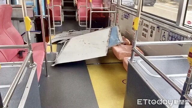 ▲公車司機疑恍神衝撞路邊轎車。(圖/記者郭世賢翻攝,下同)