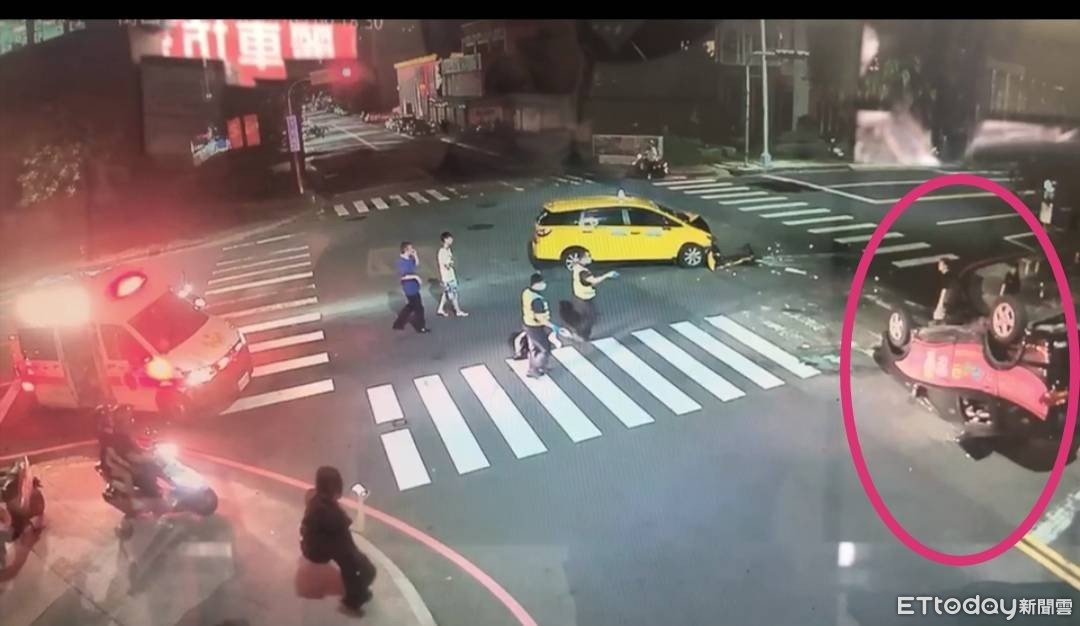▲台中南屯發生計程車撞飛自小客車車禍。(圖/記者李忠憲翻攝)