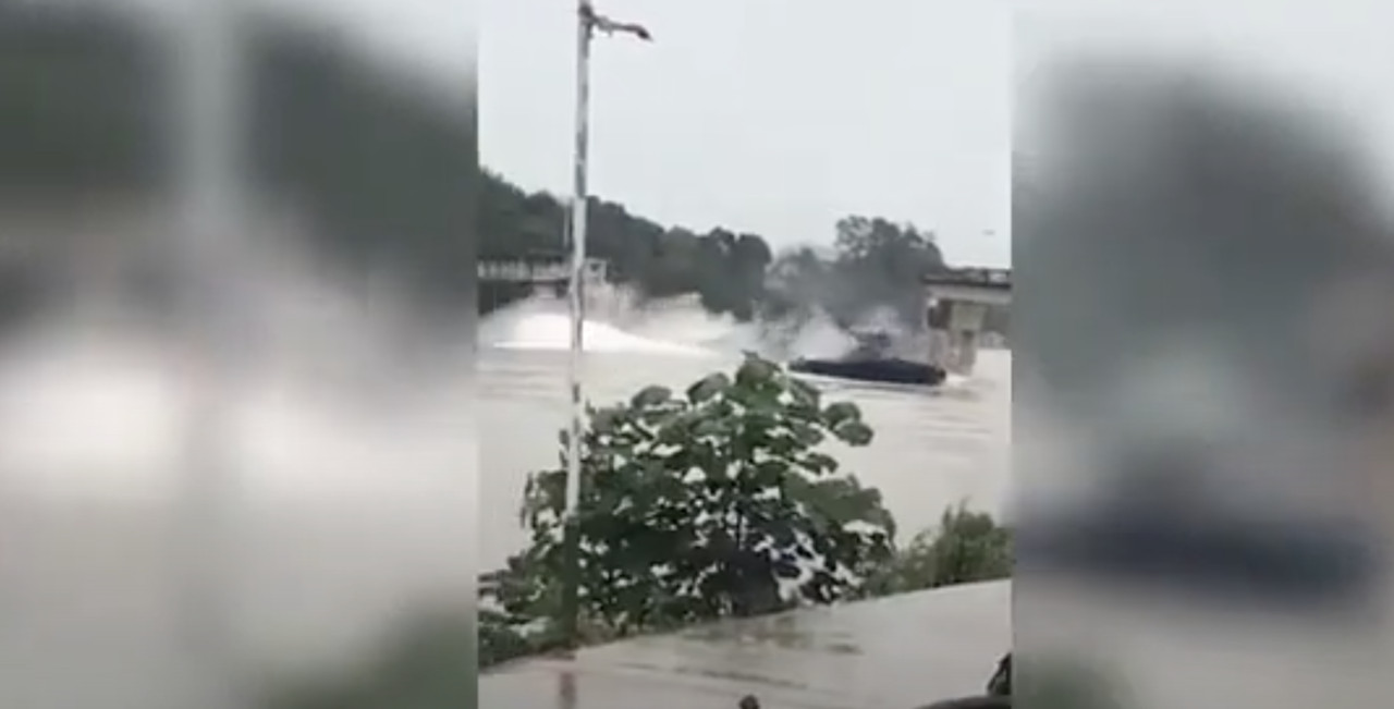 ▼橋面崩塌砸沉砂石船。(圖/翻攝封面新聞)