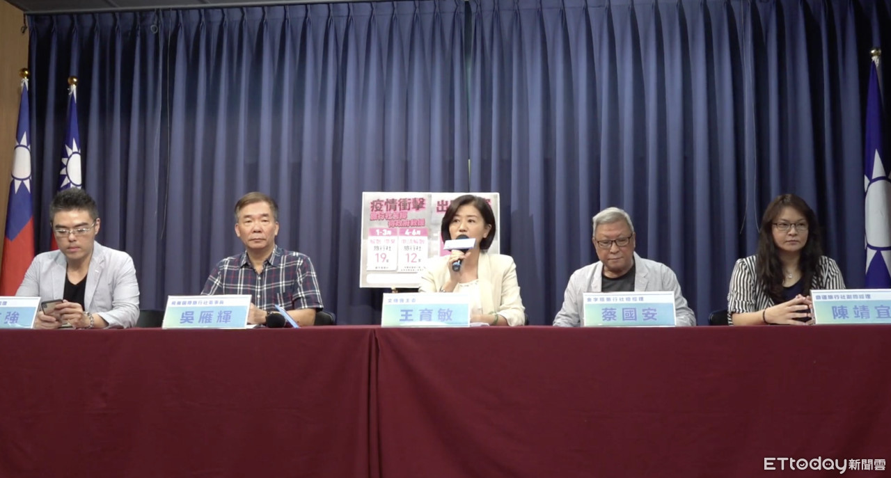 國民黨上午召開「旅行業拚觀光?關光光?政府紓困3.0要加快」記者會,由王育敏主持,邀請多位旅行社業者代表,包括飛雁國際旅行社董事長吳雁輝、金字塔旅行社副董事長蔡國安、鼎運旅行社副總經理陳靖宜、創新旅行社副總經理劉志強等,共同呼籲政府應儘速提出紓困3.0方案,協助旅行業者渡過這波疫情難關。