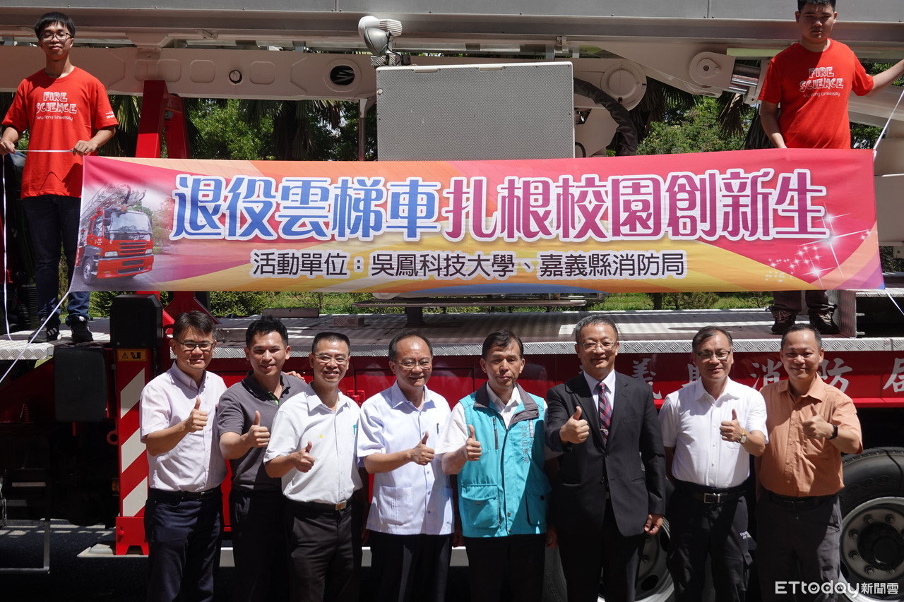 ▲▼嘉義縣消防局、吳鳳科技大學退役雲梯車捐贈儀式 。(圖/記者翁伊森翻攝)