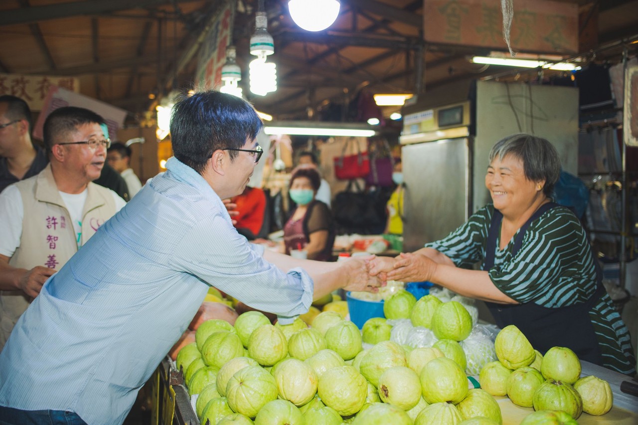 ▼陳其邁10日到市場拜票 。(圖/翻攝自陳其邁Facebook)