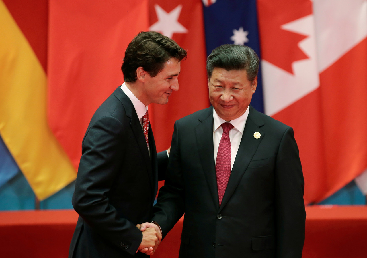▲G20會議上加拿大總理杜魯道與習近平握手(圖/路透)