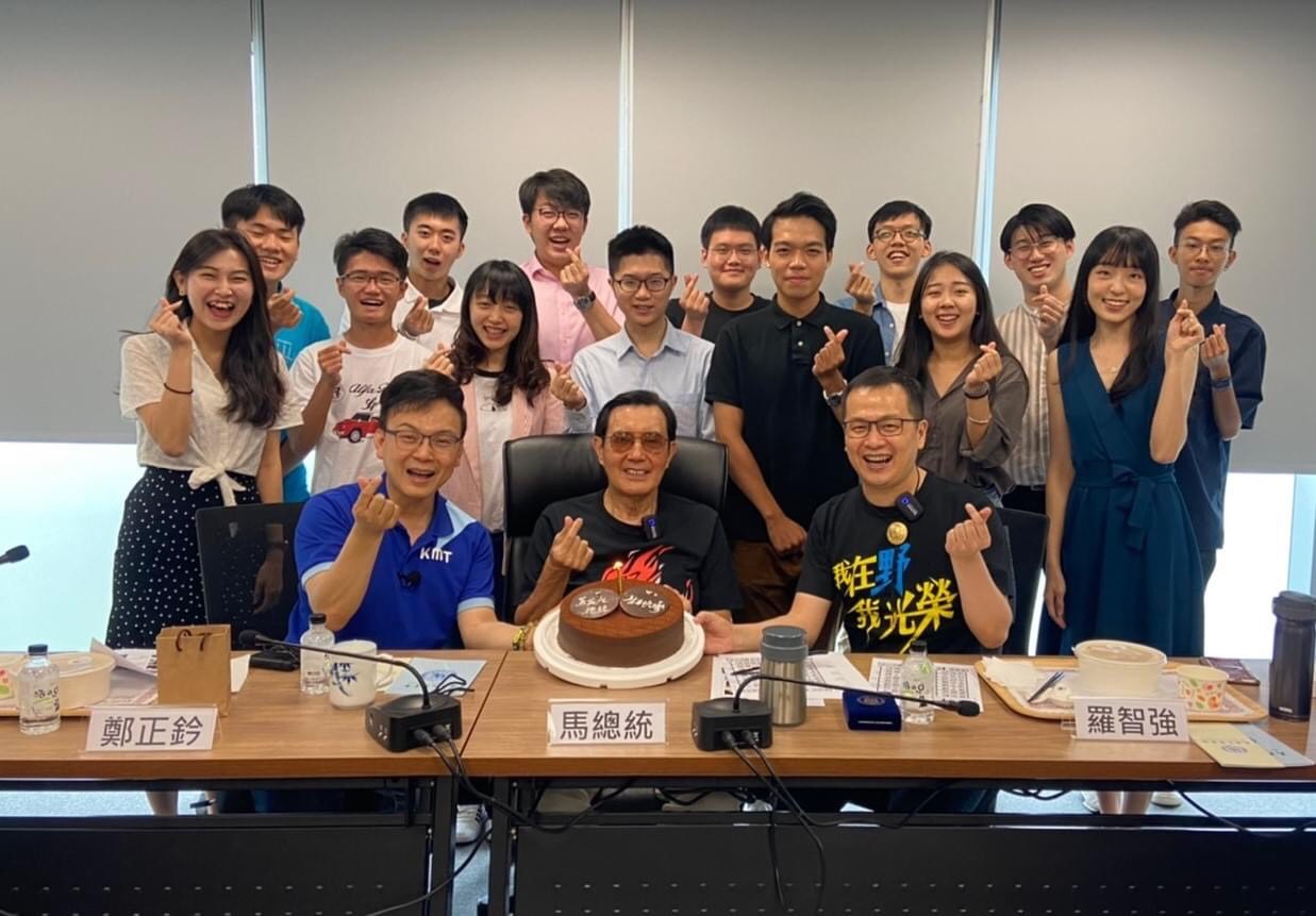 ▲羅智強、鄭正鈐與參與未來沙龍工作坊的青年提前幫馬英九慶生。(圖/翻攝自馬英九臉書粉專)
