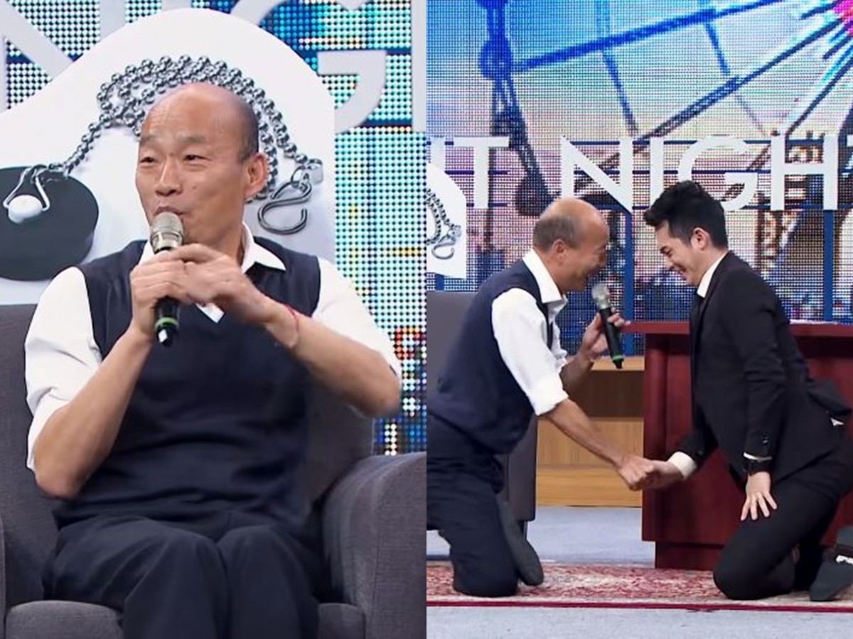 ▲韓國瑜在節目上還出現「膝蓋走路」的動作,當時也引起熱議。(圖/翻攝自YouTube/STR Network)