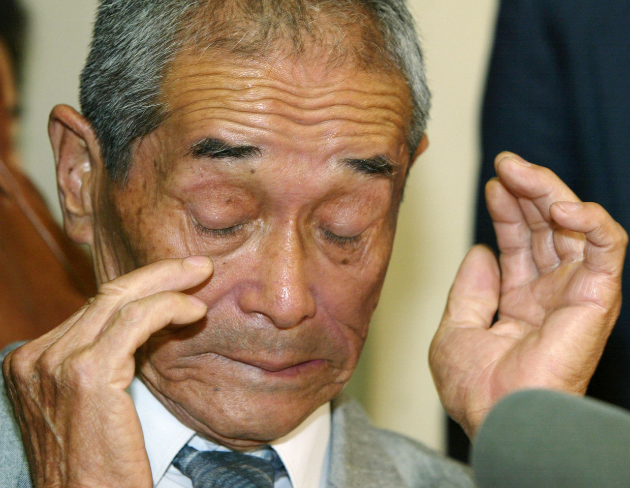 ▲地村保得知兒子還活著,感動落淚。(圖/路透)