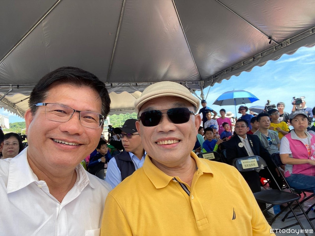 不過林佳龍貼出與蘇貞昌的合照,可見蘇貞昌膚色較林白了非常多,戴著帽子、墨鏡防曬,林笑稱「蘇貞昌院長很體貼,陽光很烈所以先把電火球蓋起來」,有網友笑稱「龍哥,美肌模式開太強了啦!你看蘇院長變好白」。