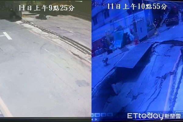 ▼永和坍塌畫面曝光,90分鐘內整條路變了樣。(圖/記者陳雕文翻攝)
