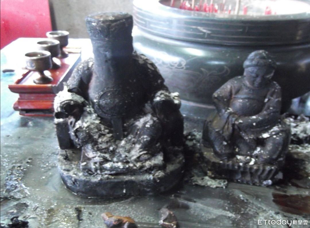 ▲長寮尾福德宮土地公土地婆神像遭放火燒毀。(圖/記者李忠憲翻攝)