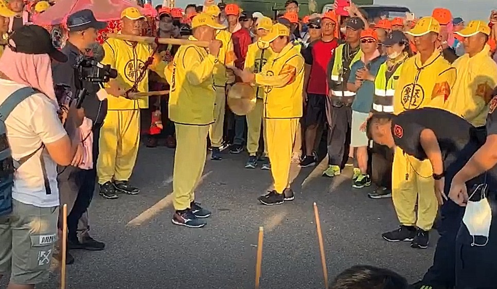 ▲大甲警分局日南派出所長邱量虔,朝白沙屯媽祖鑾轎鞠躬敬拜55下。(圖/柯孟杰粉絲團提供)