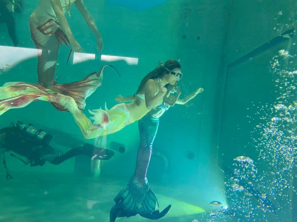 基隆海科館表示,暑假期間從事水上活動的民眾增多,因此特別於今年6月起安排「人魚海廢劇場」,由只配戴面鏡、配重塊、潛水衣及蛙鞋的潛水者,不使用空氣瓶,僅藉由單蹼及身體律動,化身「美人魚」悠游於水中,此外,海科館也特邀水肺潛水志工加入,向民眾展示浮潛、水肺潛水、自由潛水以及人魚潛水的不同處。