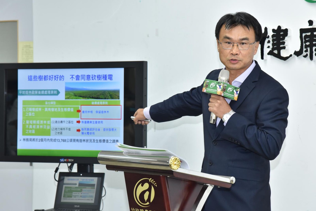 農委會強調樹已經都長得好好的,而且已成林者,就不會同意砍樹種電。另外,台糖公司於臺南有機蔬菜產區及屏東毛豆產區亦提出結合綠能專案計畫,農委會認定嚴重影響該產區農作產量及品質穩定,相關計畫不具產業發展可行性,已於109年3月30日表達不同意並退回該申請案。