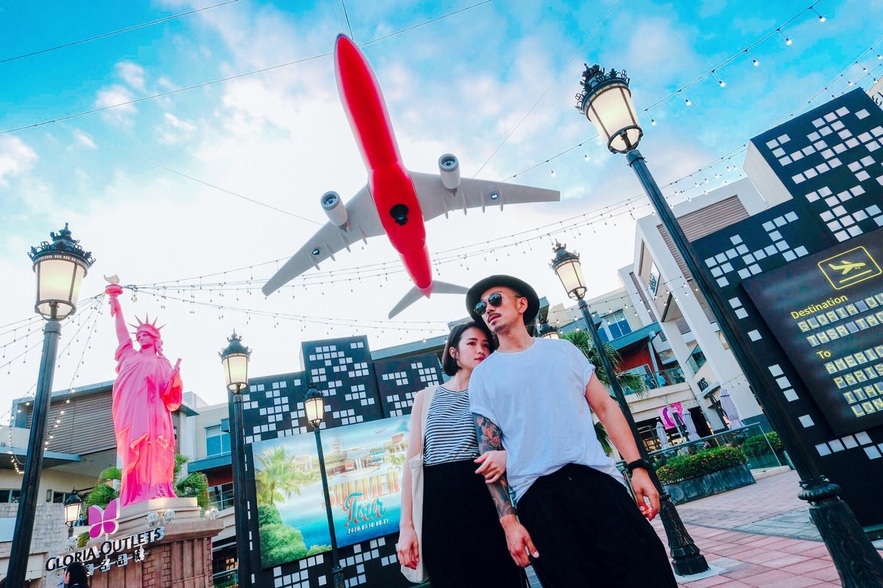 今年夏天不能搭飛機也能享受滿滿出國感!GLORIA OUTLETS華泰名品城將第一廣場變成紐約國際機場,5米長的巨型專機飛翔空中,在下方拍照猶如飛機掠過頭頂,記得穿上最潮的衣服,機場時尚穿搭照輕鬆完成,PO上IG肯定收到滿滿讚!「華泰飛機巷」白天晚上都好好拍,巨型飛機夜晚與四周彩燈相互呼應,能拍出與白天截然不同的浪漫氛圍。走一趟華泰名品城,除了飛機巷,還能搜集紐約自由女神、巴黎艾非爾鐵塔、羅馬競技場、倫敦大笨鐘四國經典地標,環遊世界就是這麼簡單。拍照逛街走到又餓又累,在園區一期和三期美食街裡可任選各國美食補充體力,義式、日式、美式、韓式和南洋風味一應俱全,讓味蕾同步「嚐遊」全世界。