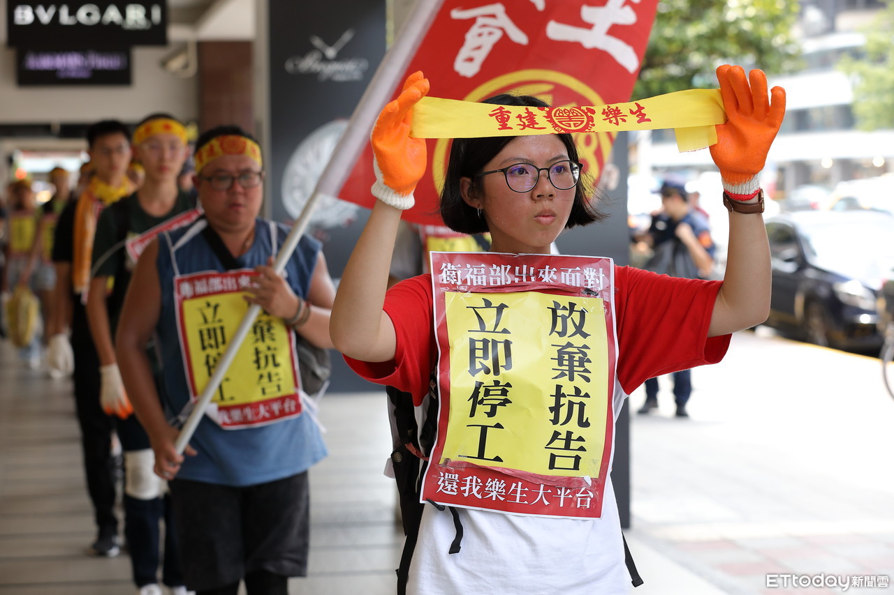 ▼樂生保留自救會和青年樂生聯盟頂著酷暑苦行。(圖/記者湯興漢攝)