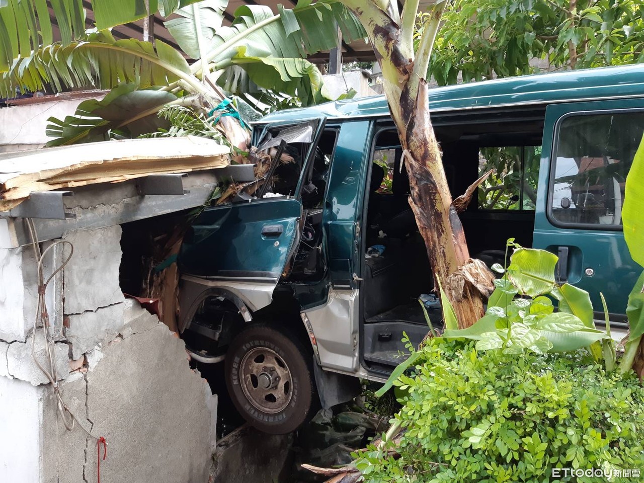 新北市一名64歲黃姓駕駛開著廂型車,13日下午4時許,行經樹林區中山路三段時,不知何因,突然失控衝進民宅內,將房子撞出一個大洞,駕駛受困車內,屋內60歲王姓婦人正在煮飯卻遭磚瓦壓傷,警消獲報到場將2人送醫救治,詳細肇事原因待警方調查。