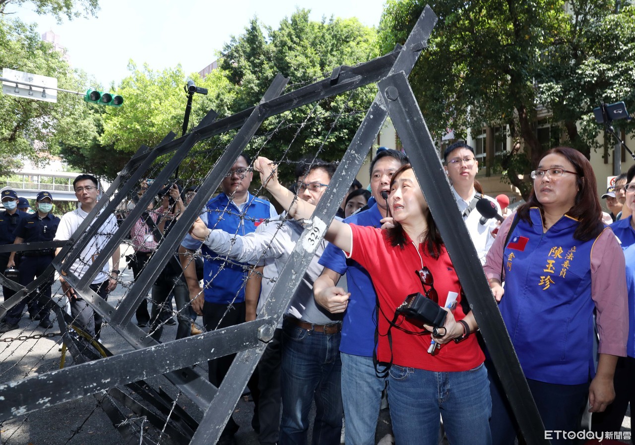 ▲國民黨團繞行立法院外圍拒馬。(圖/記者屠惠剛攝)