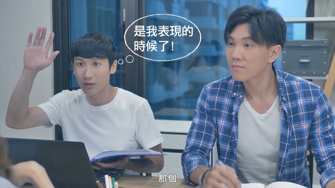 ▲辦公室裡的草食男和耍帥哥都眼睛一亮想被翻綠牌啊。(圖/翻攝自影片,下同。)