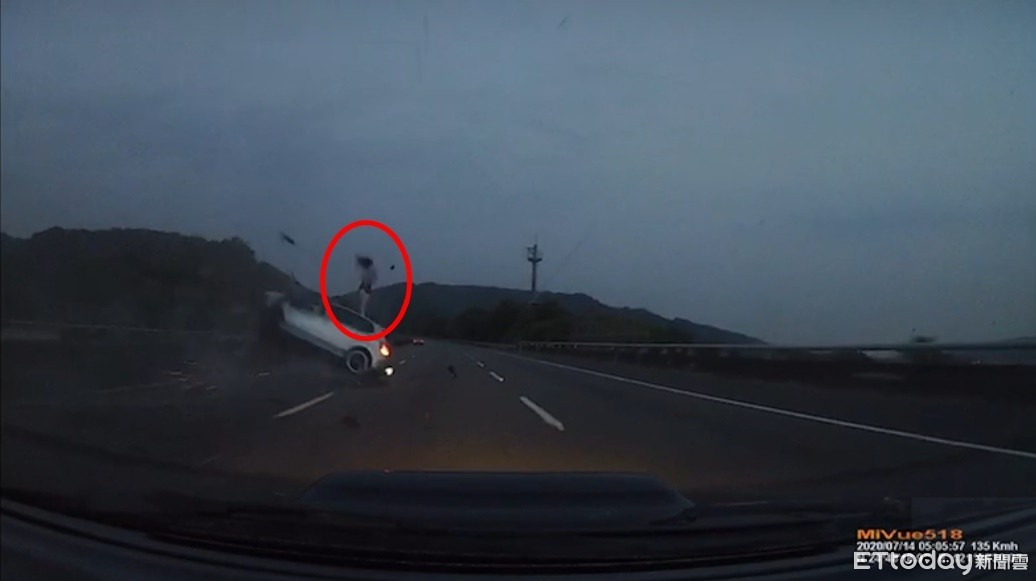 國道3號南下82.6km處,新竹關西路段14日清晨5時發生自撞車禍,20歲陳姓男子不明原因自撞,導致18歲黃姓女子從後座噴飛,仍在醫院急救中。另外3輛同行的朋友表示,只看到前車突然晃一下,就直接失控了。