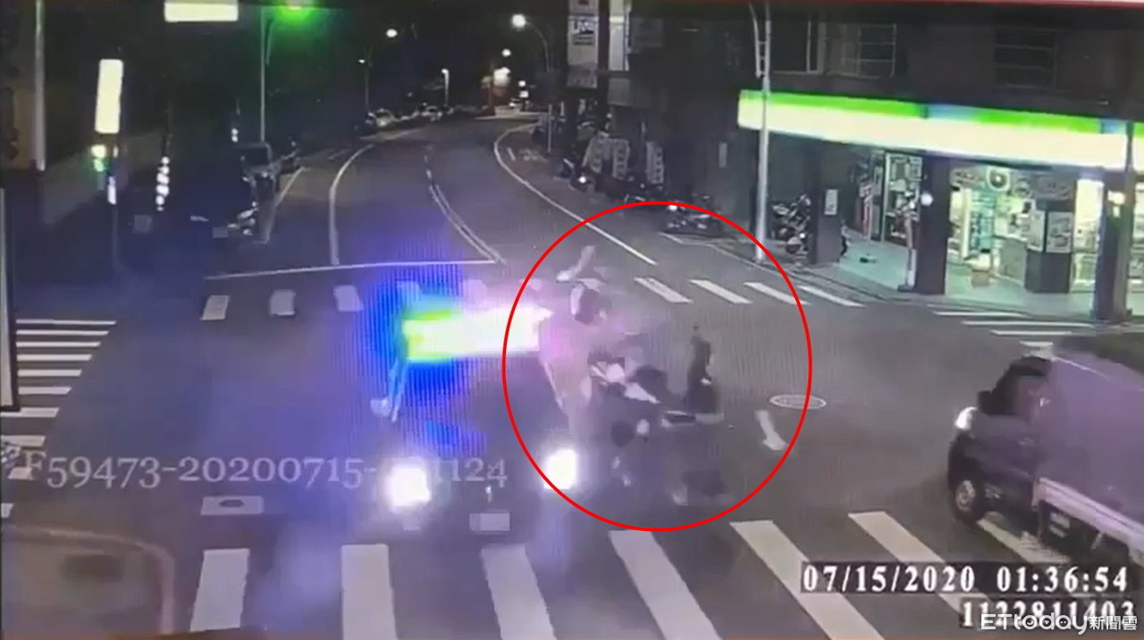 ▲▼機車闖紅燈撞警車,兩人噴飛1死1傷。(圖/記者游宗樺翻攝)