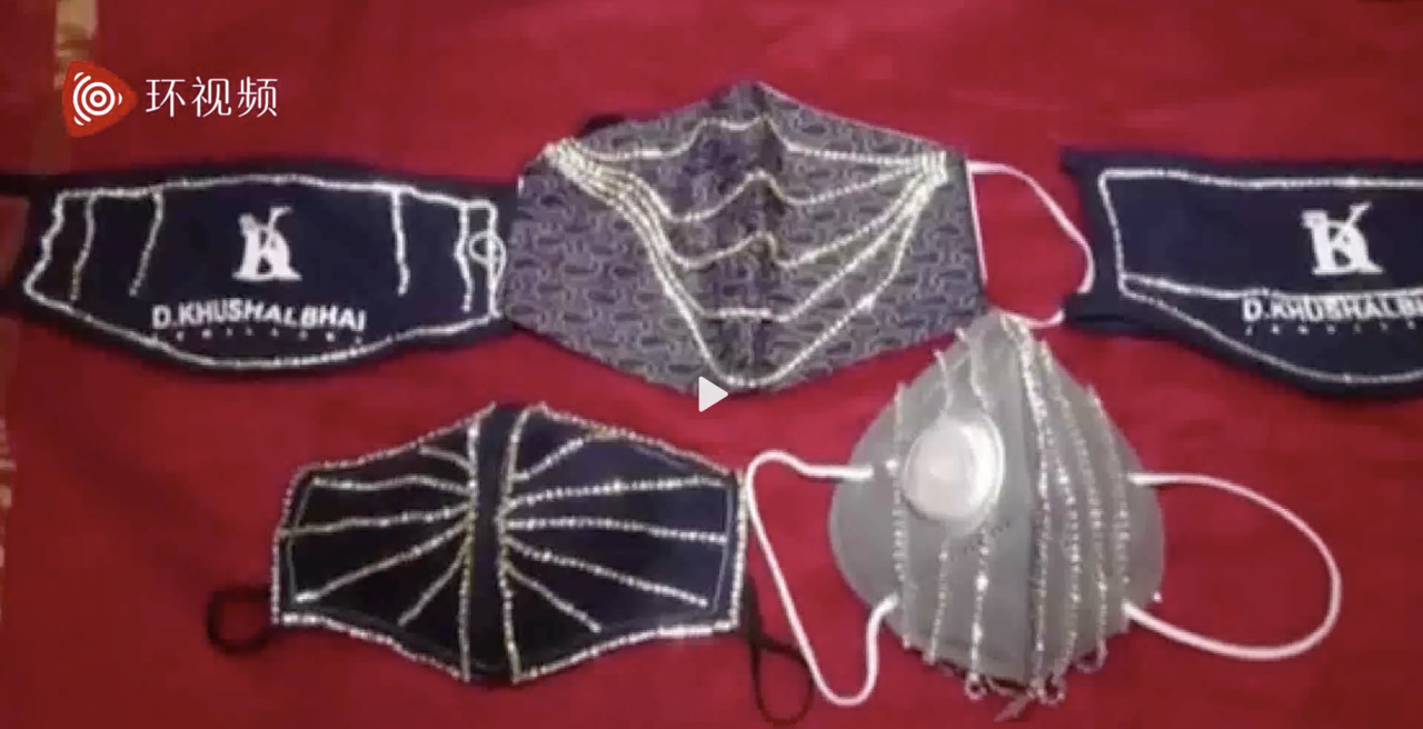 印度曾爆出有富商花大筆錢做「黃金口罩」,近日又傳有店家販賣更奢華的口罩。製作產品的是一間珠寶店,位於蘇拉特(Surat)、一個被稱為「世界鑽石之都」的小鎮,店家收到一對新人的請求,希望他們能幫忙製作「鑽石口罩」,讓2人在婚禮上配戴。珠寶店事後更上架各式各樣的鑽石口罩,成功引發話題。