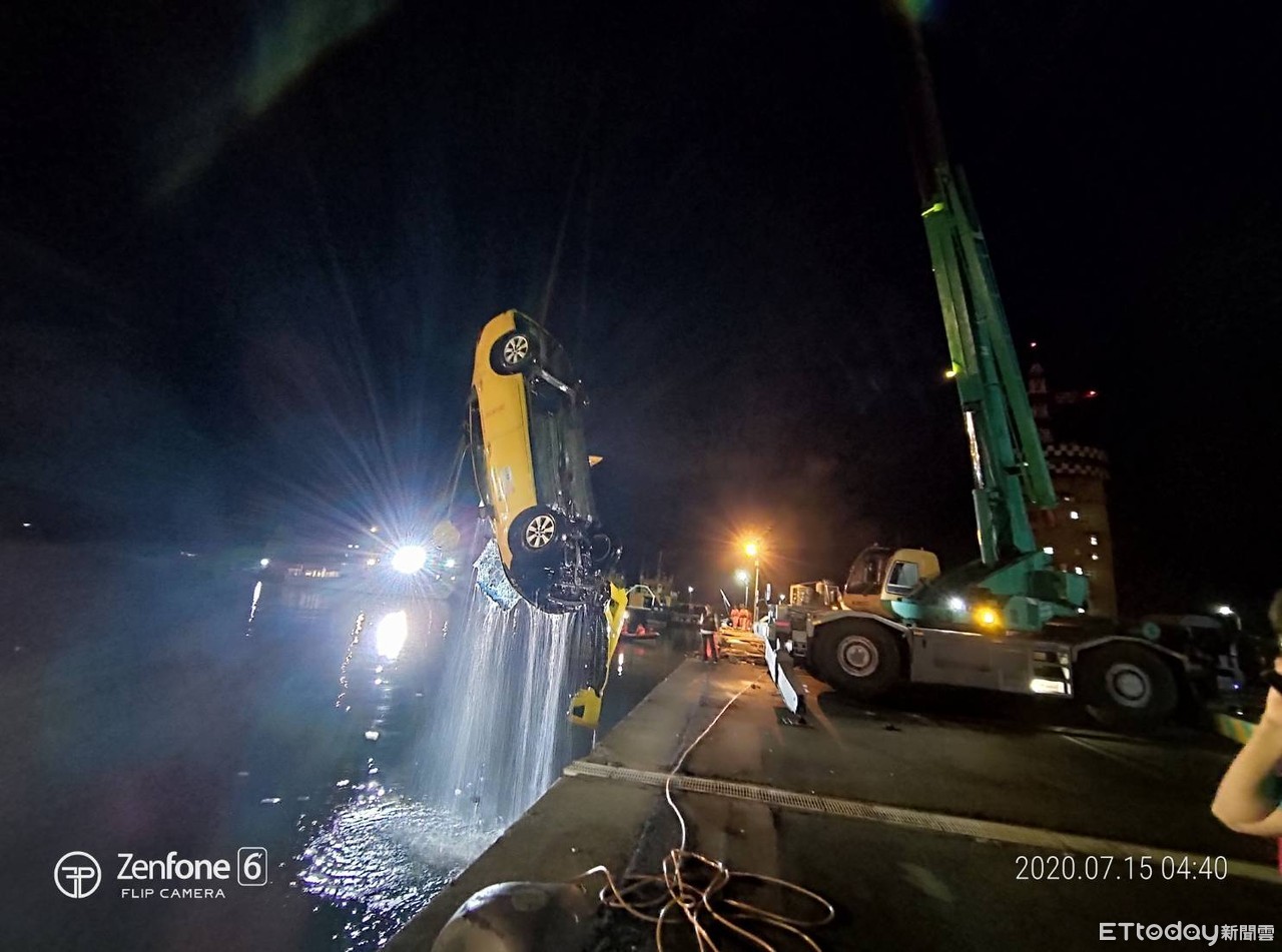 ▲台中港15日凌晨1點多,一輛計程車不明原因墜港。(圖/記者白珈陽翻攝)