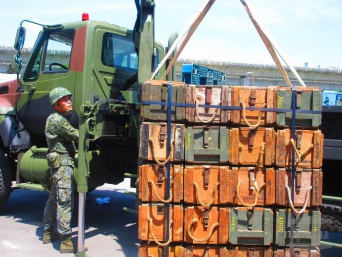 陸軍六軍團第三地區支援指揮部彈藥庫龍潭分庫14日實施打擊、砲兵部隊彈藥預置分囤演練,由副分庫長陳上尉帶領彈藥前支點官兵針對戰、甲、砲車及輕兵器等彈藥,進行補給作業;此次演練特別結合民間物流公司,協助彈藥整補作業,藉以提升整體後勤運補效能。(文:軍聞社周力行/圖:三支部提供)