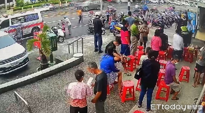 ▲台南市麻豆郵局有一名婦女,抽了號碼牌排隊等候時,疑低血糖人突然倒地,被警員發現,通報消防局派救護車送醫就治。(圖/記者林悅翻攝,下同)