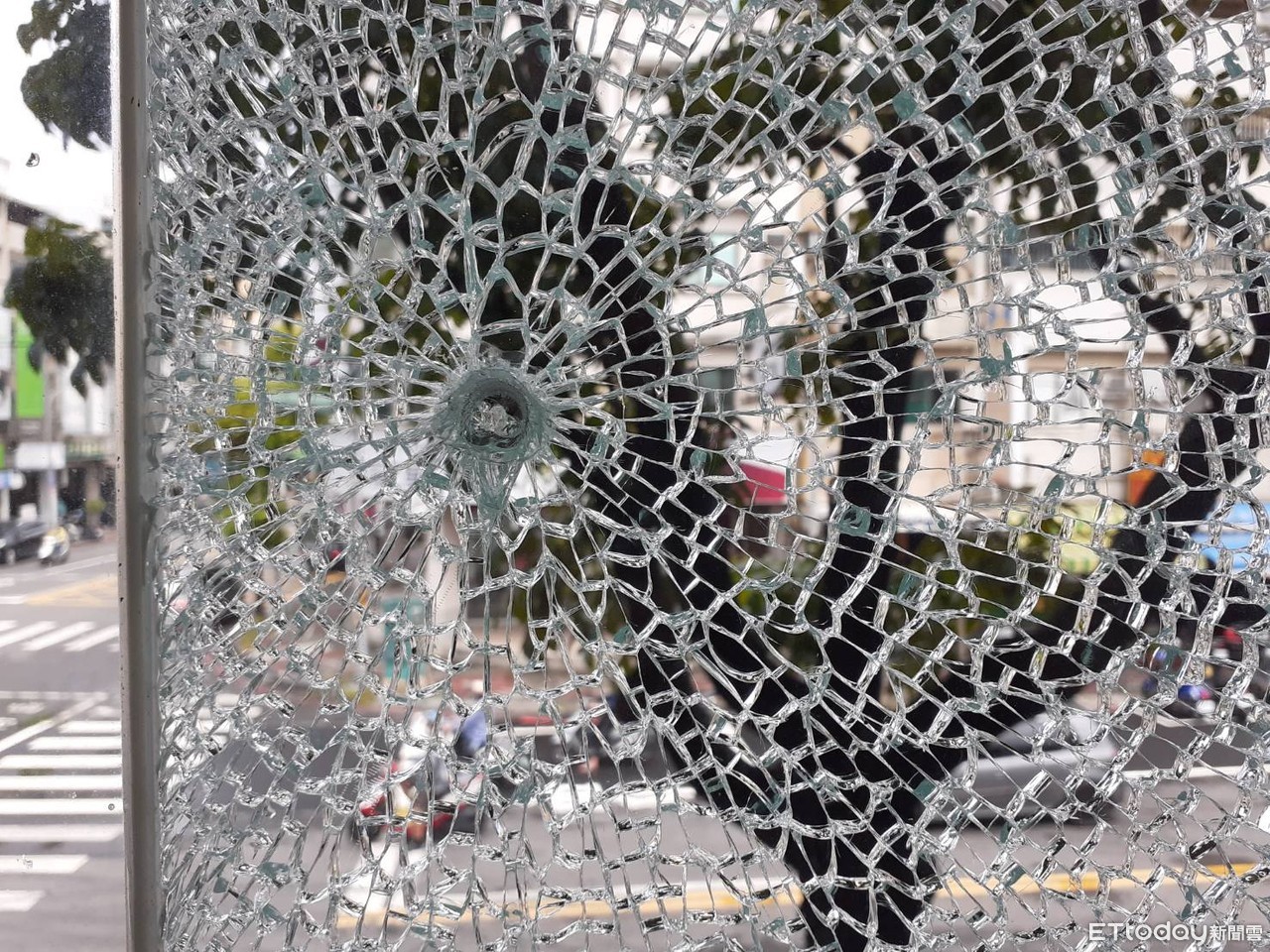 ▲玻璃櫥窗出現蜘蛛網狀裂痕。(圖/記者許宥孺翻攝)