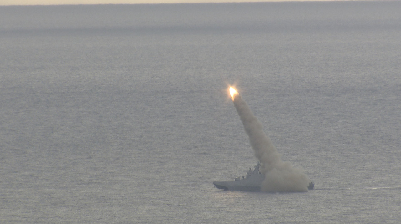 ▲三軍聯合火力打擊實彈射擊-海軍沱江軍艦射擊雄風三型反艦飛彈。(國防部提供)