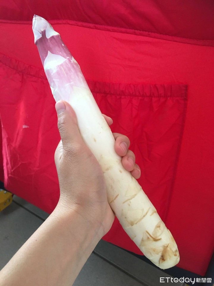 ▲直徑超過5公分的紫蘆筍,一般男生的手是握不住的。(圖/張景涵提供)