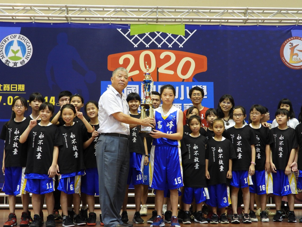 教育處表示,今年的賽事雖然深受疫情的干擾延至7月9日開打,但高峰女籃隊在陳寬榮、林昱德、劉振偉及温至帆老師組成的教練團隊努力之下,克服疫情的因素,全心投入練習,表現卓越。比賽時面對人高馬大的對手,小球員無所畏懼,雙方戰況膠著互有拉鋸,最終以1分之差逆轉戰局,高峰女籃以全勝的戰績勇奪2020全國國民小學籃球錦標賽乙組五年級女子組冠軍。